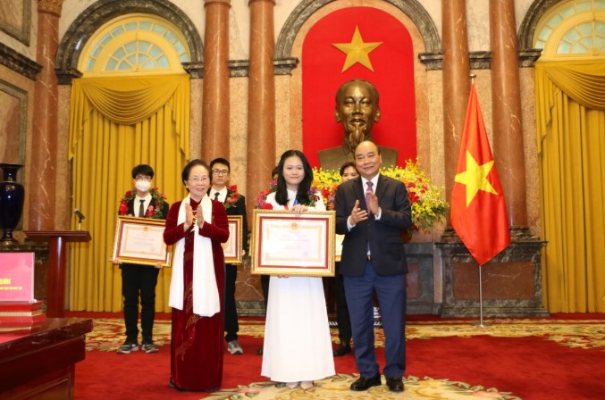 Nguyễn Lê Thảo Anh nhận Huân chương Lao động hạng Nhì do Chủ tịch nước Nguyễn Xuân Phúc trao tặng.