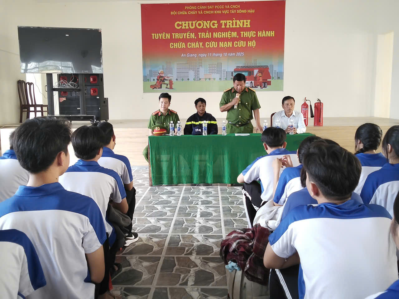 Nhằm nâng cao nhận thức, kỹ năng phòng cháy chữa cháy (PCCC) và cứu nạn cứu hộ (CNCH) cho cán bộ, giáo viên và học sinh, chiều ngày 11/10/2025 Trường THPT Giồng Riềng phối hợp Đội Cảnh sát phòng cháy chữa cháy và cứu nạn cứu hộ khu vực Tây sông hậu tổ chức buổi tuyên truyền , trải nghiệm, thực hành chữa cháy, cứu nạn cứu hộ.