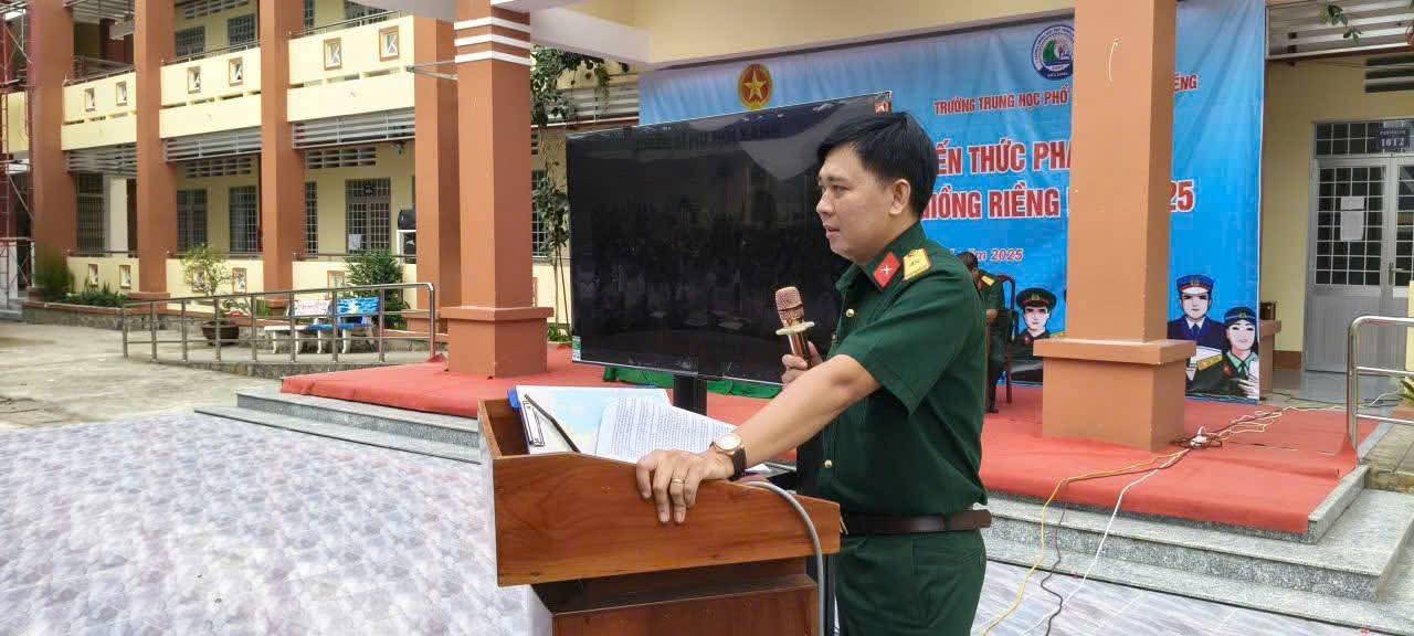 BAN CHỈ HUY PHÒNG THỦ KHU VỰC 6 - NGỌC CHÚC PHỐI HỢP TRƯỜNG THPT GIỒNG RIỀNG TỔ CHỨC TUYÊN TRUYỀN, PHỔ BIẾN PHÁP LUẬT (ĐỀ ÁN 1371) CHO HỌC SINH